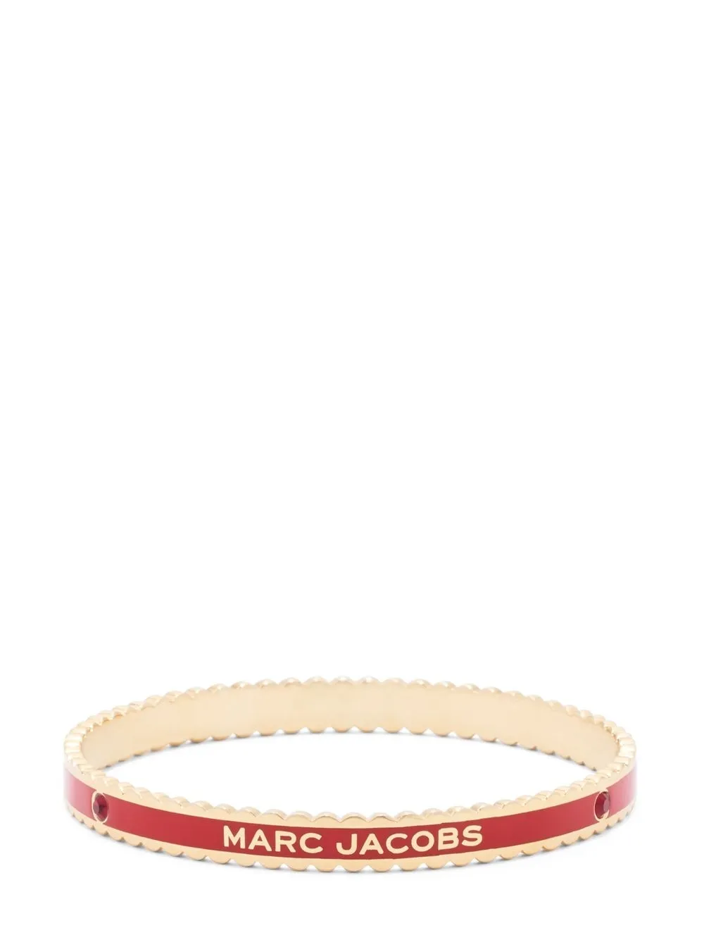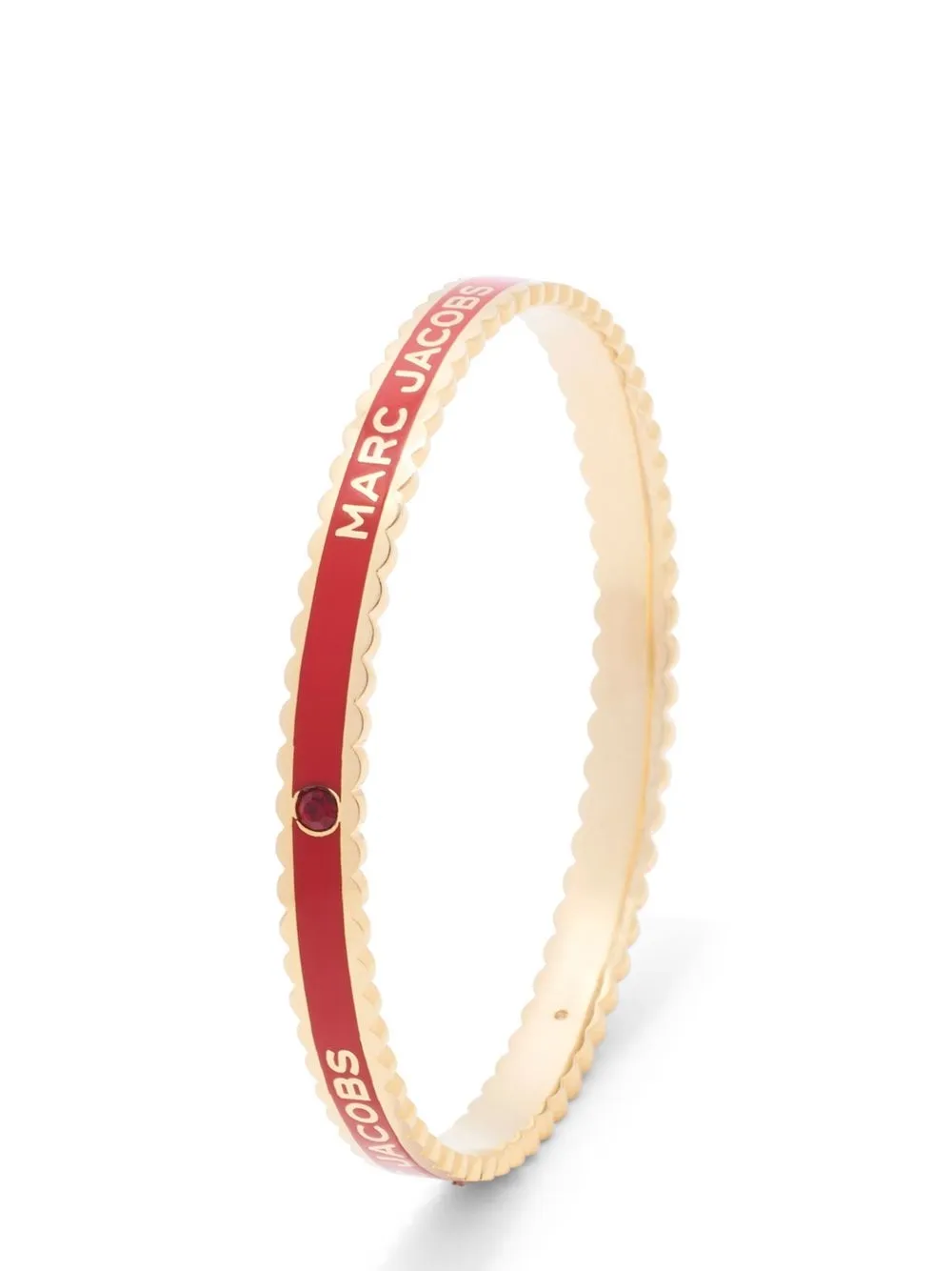 The Medallion logo-print bangle from Marc Jacobs featuring dark red, gold-tone hardware, enamel detail, crystal embellishment, scallop edge, logo embellishment and slip-on style.