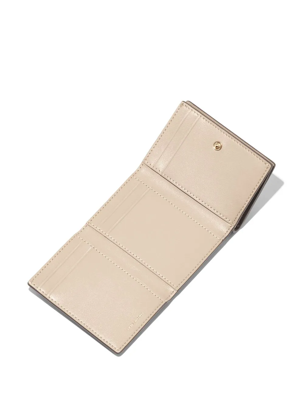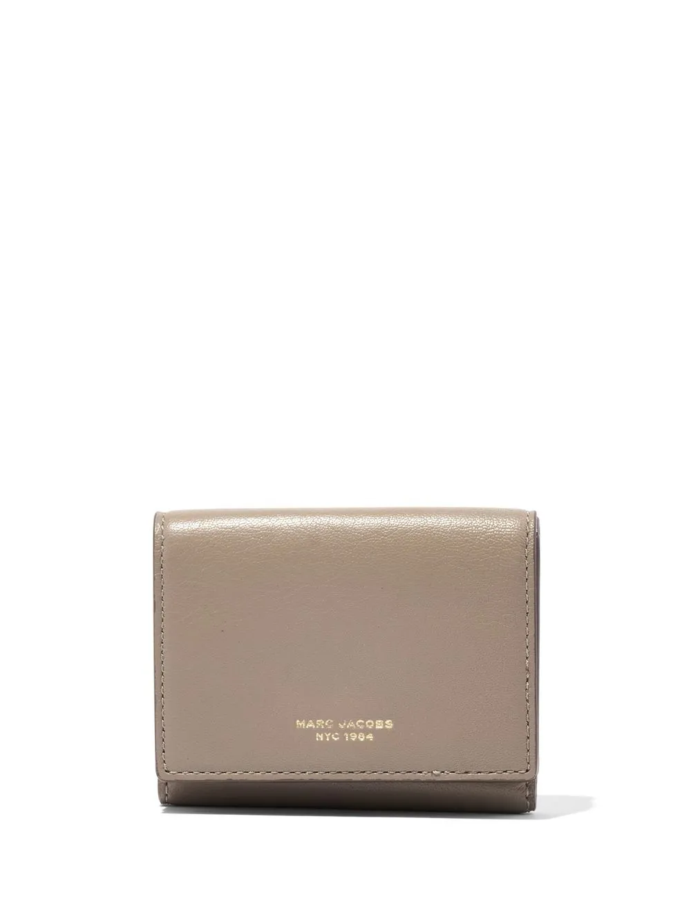 The Medium engraved-logo wallet from Marc Jacobs featuring beige, leather, engraved logo, tri-fold design, snap-fit fastening, card slots and note compartment.