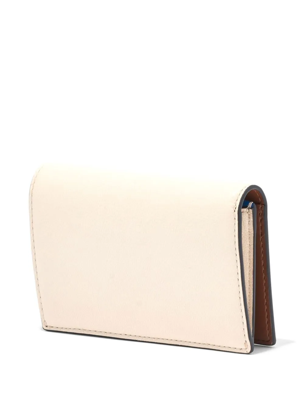 The Slim colour-block wallet from Marc Jacobs featuring cream white, blue, brown, goatskin, colour-block design, logo stamp to the front, internal logo stamp, foldover top with press-stud fastening, internal card slots and internal zip-fastening pocket.