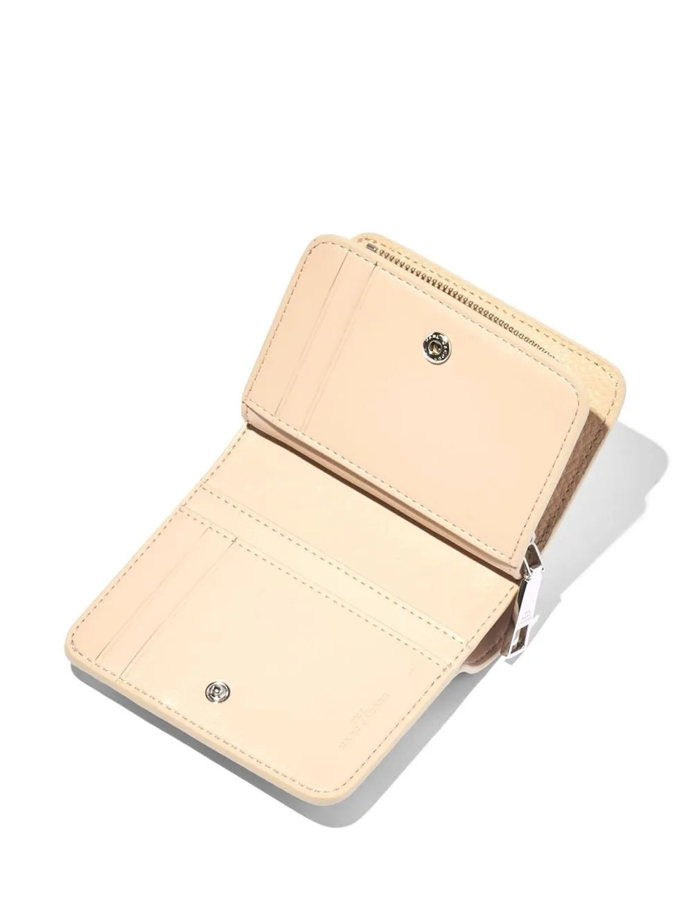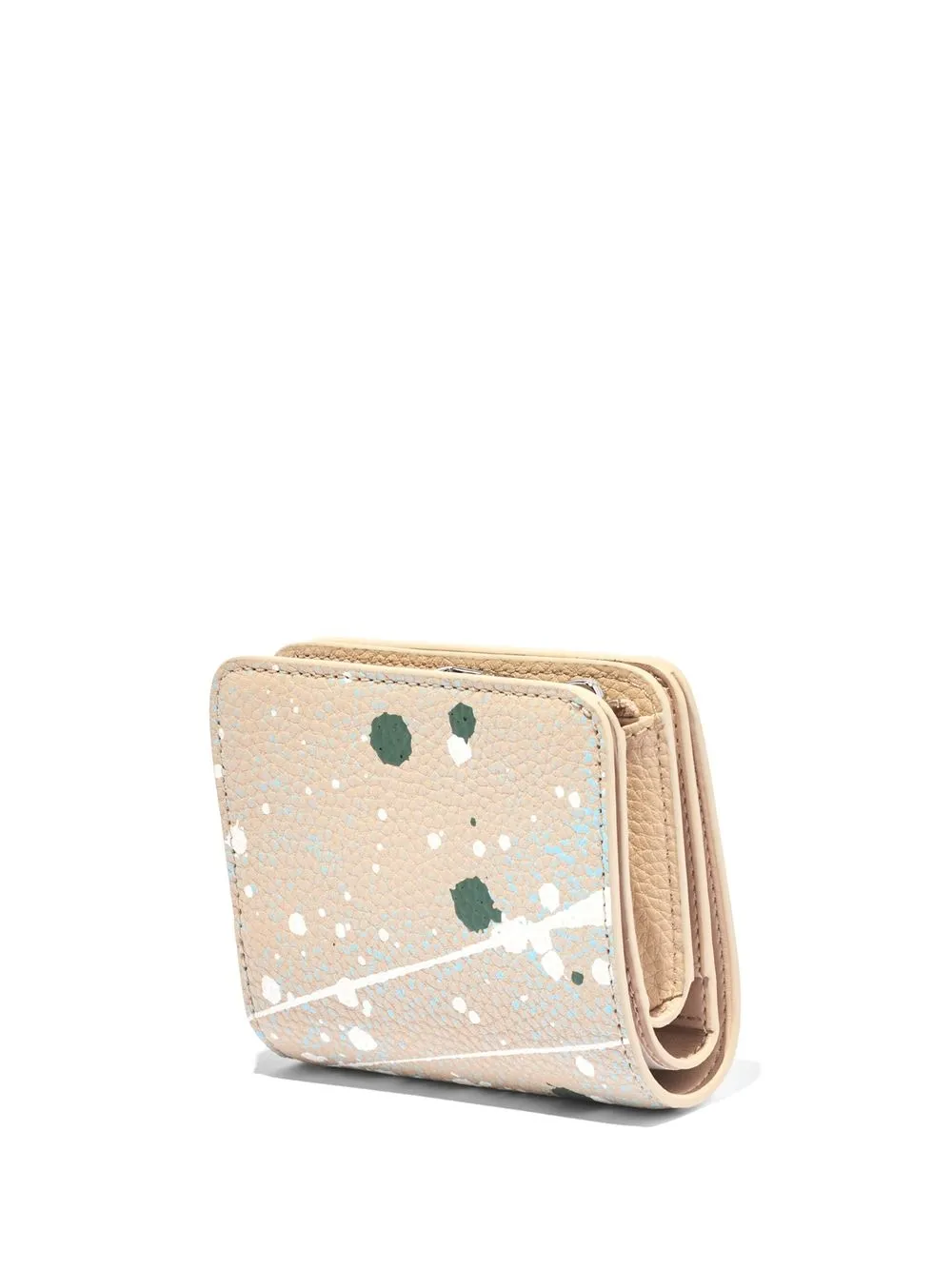 Beige/multicolour leather The Snapshot Splatter mini wallet from Marc Jacobs featuring paint splatter detail, silver-tone hardware, logo plaque, front press-stud and zip fastening, card slots, coin pocket and internal note compartments.