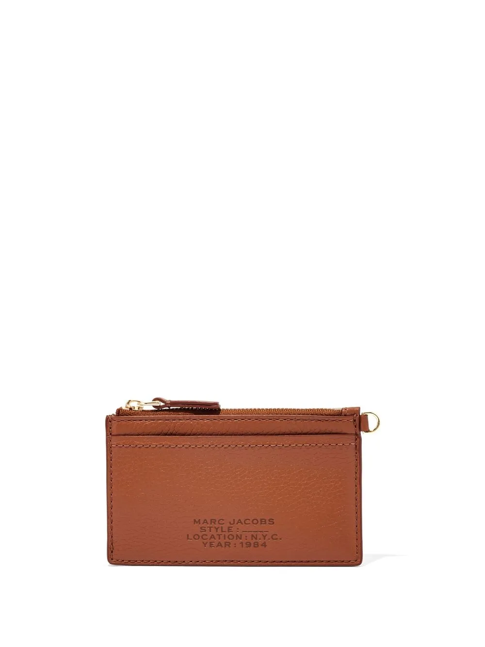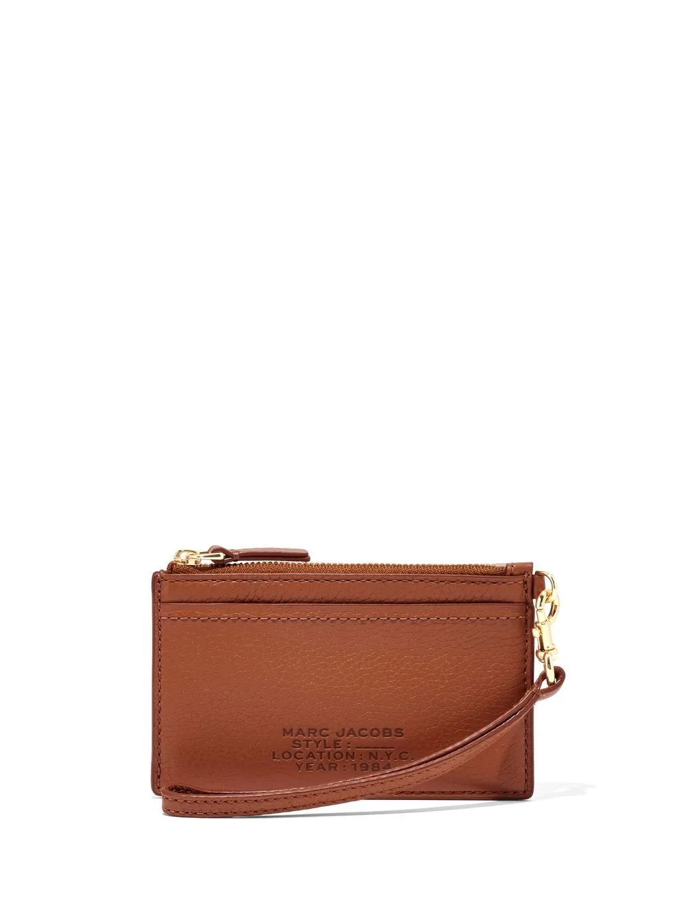 The Top Zip logo-print wallet from Marc Jacobs featuring light brown, leather, logo print to the front, top zip fastening, card slots and note compartment.