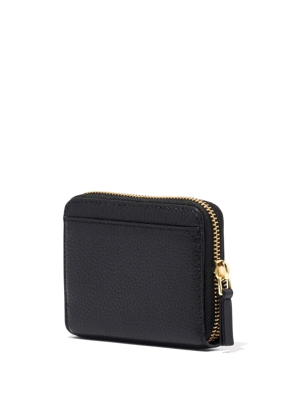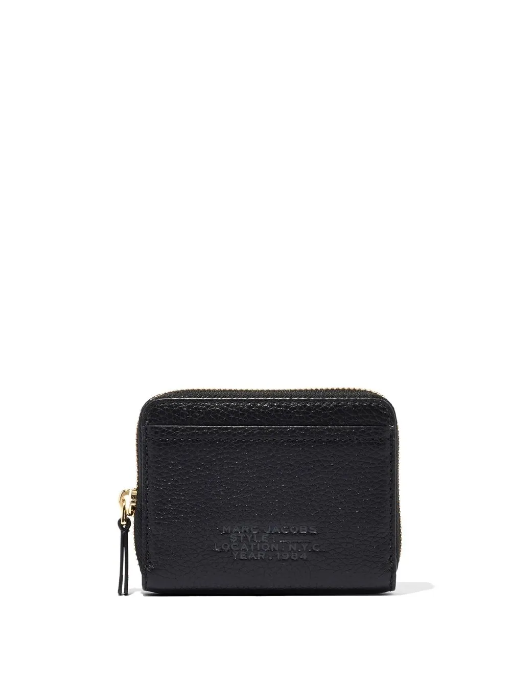 The Zip-Around leather wallet from Marc Jacobs featuring black, leather, pebbled texture, logo print to the front, all-around zip fastening and card slots.