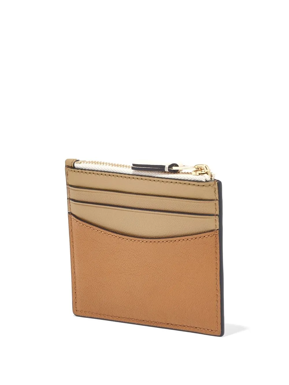 The Zip leather card case from Marc Jacobs featuring light brown, leather, engraved logo, top zip fastening, card slots and coin pocket.